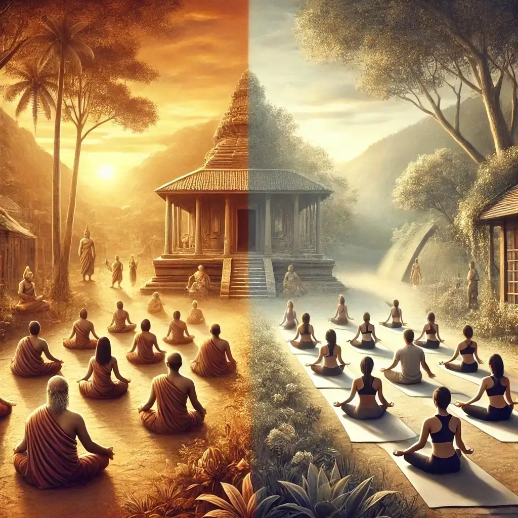 In Patanjali’s time, Asanas were not the elaborate physical practices we see today. They primarily referred to seated postures, such as Padmasana (Lotus Pose) or Sukhasana (Easy Pose), designed for meditation.