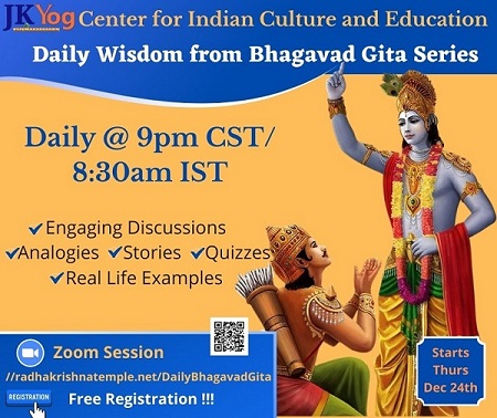 Daily Wisdom from Bhagavad Gita series is a daily series from Mon - Fri 9 pm - 10 pm CST (Tue - Sat 8:30 am - 9:30 am IST)