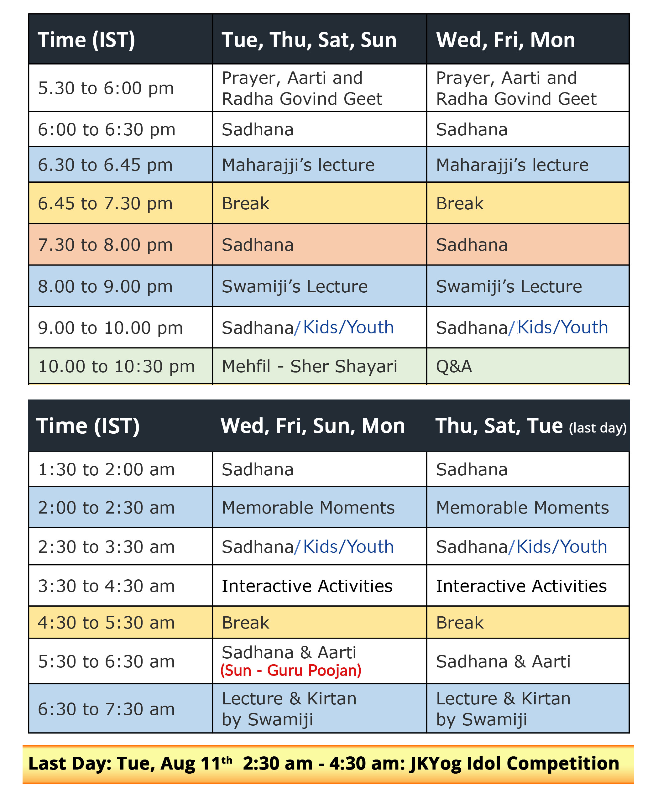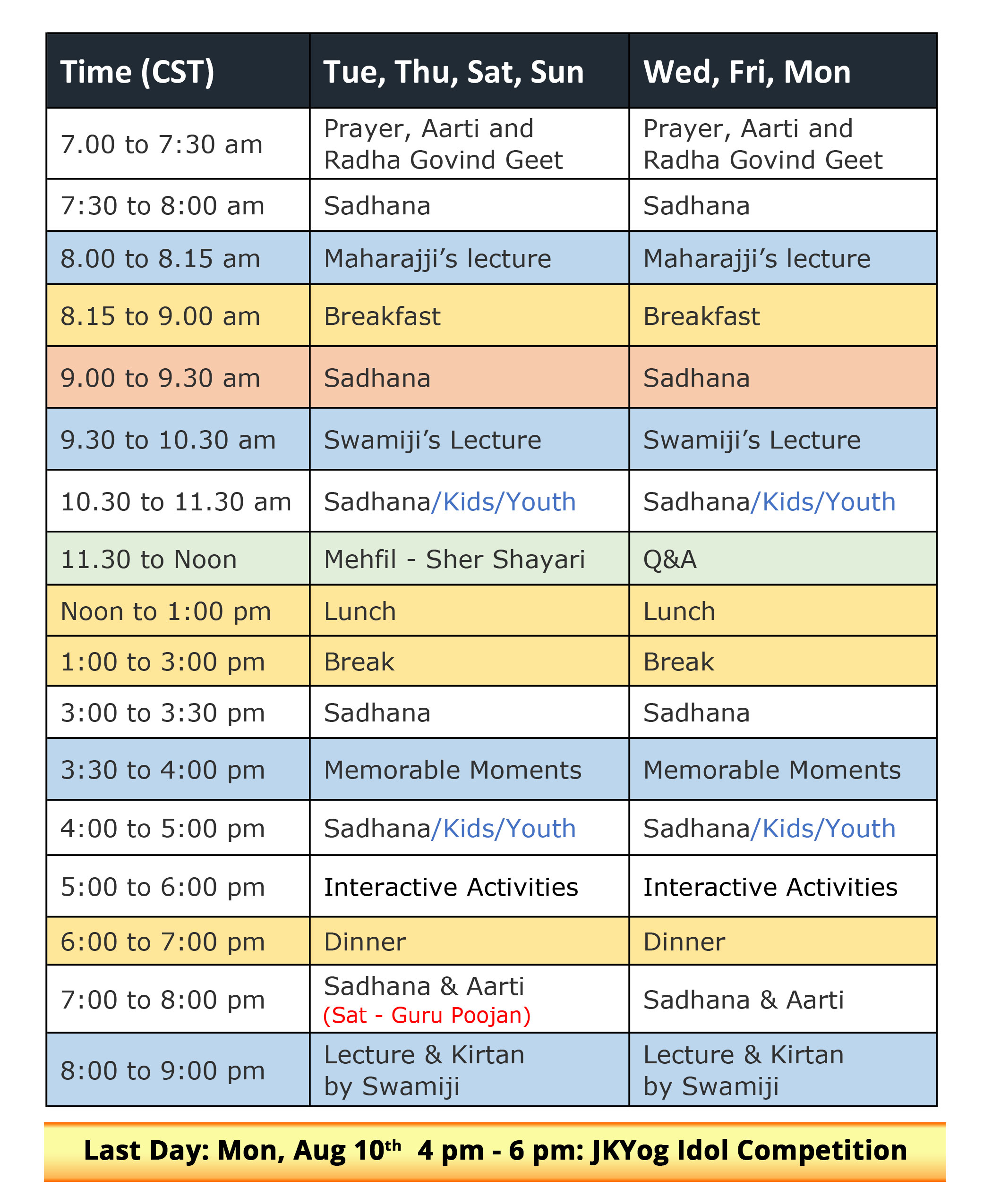 Watch and participate in JKYog Family Camp, LIVE broadcast sessions from Radha Krishna Temple of Dallas from Aug 4th - Aug 10th.