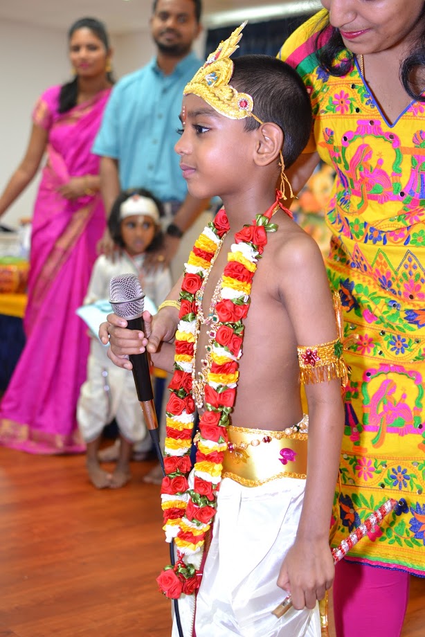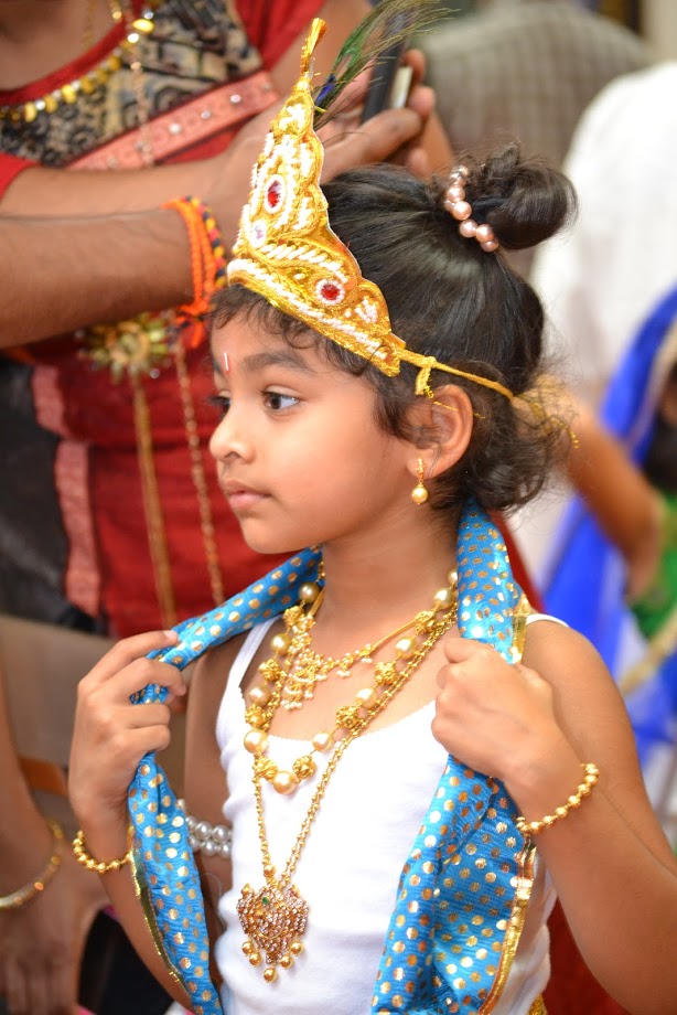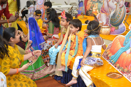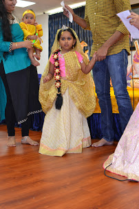 Kudos to all the youngsters and especially their creative and imaginative parents who meticulously arranged for all the beautiful and colorful fancy dress, ornate accessories, and special make-up. What a treasured and precious opportunity to put yourself in the shoes of Brajwasi! The auspicious chance to play the role of Shri Krishna or one of his close associate will remain a cherished memory.