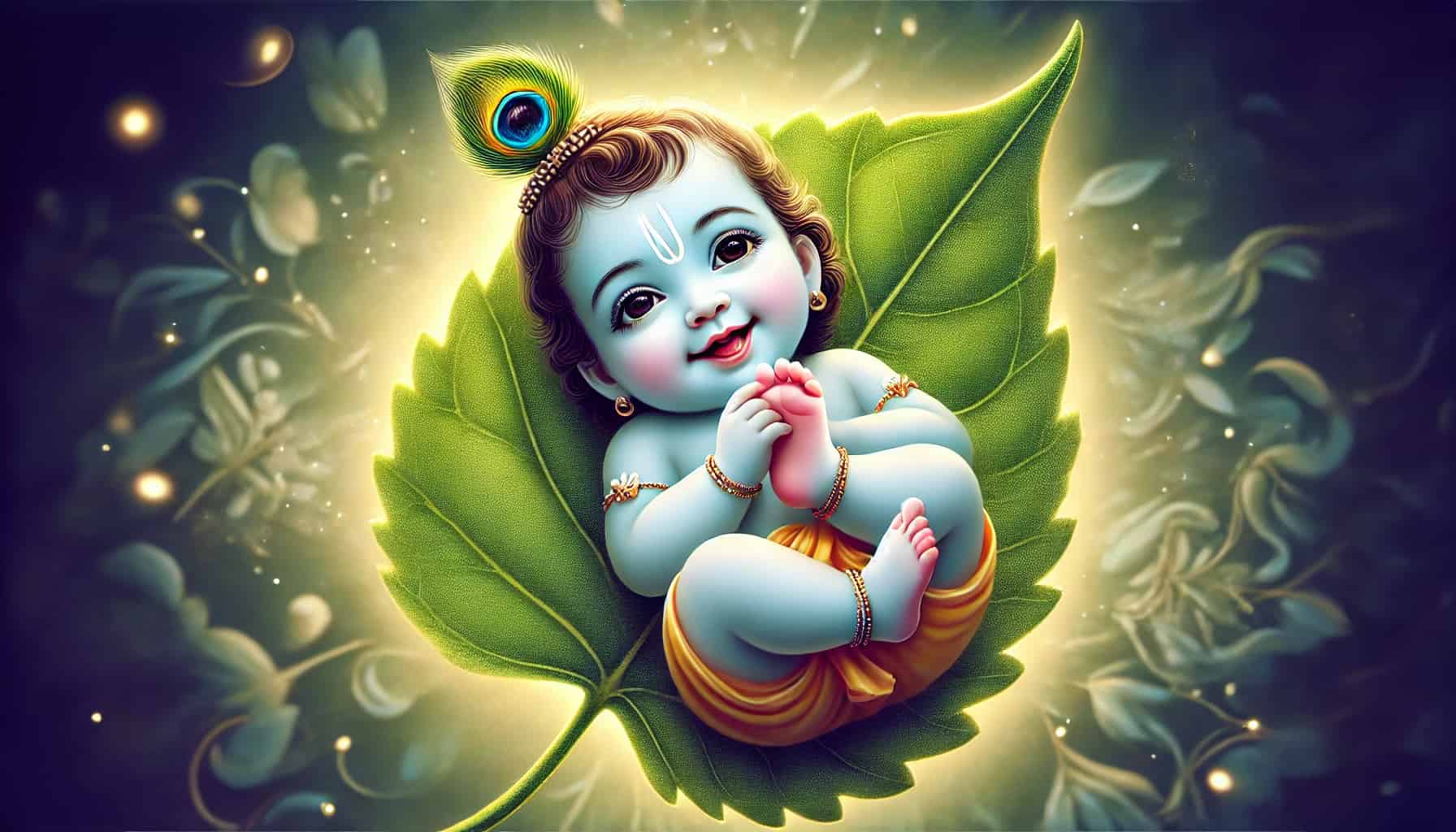 The sage Markandeya once witnessed the end of a cosmic cycle and saw baby Narayana on a banyan leaf floating in the deluge. Everything dissolves — only God remains.