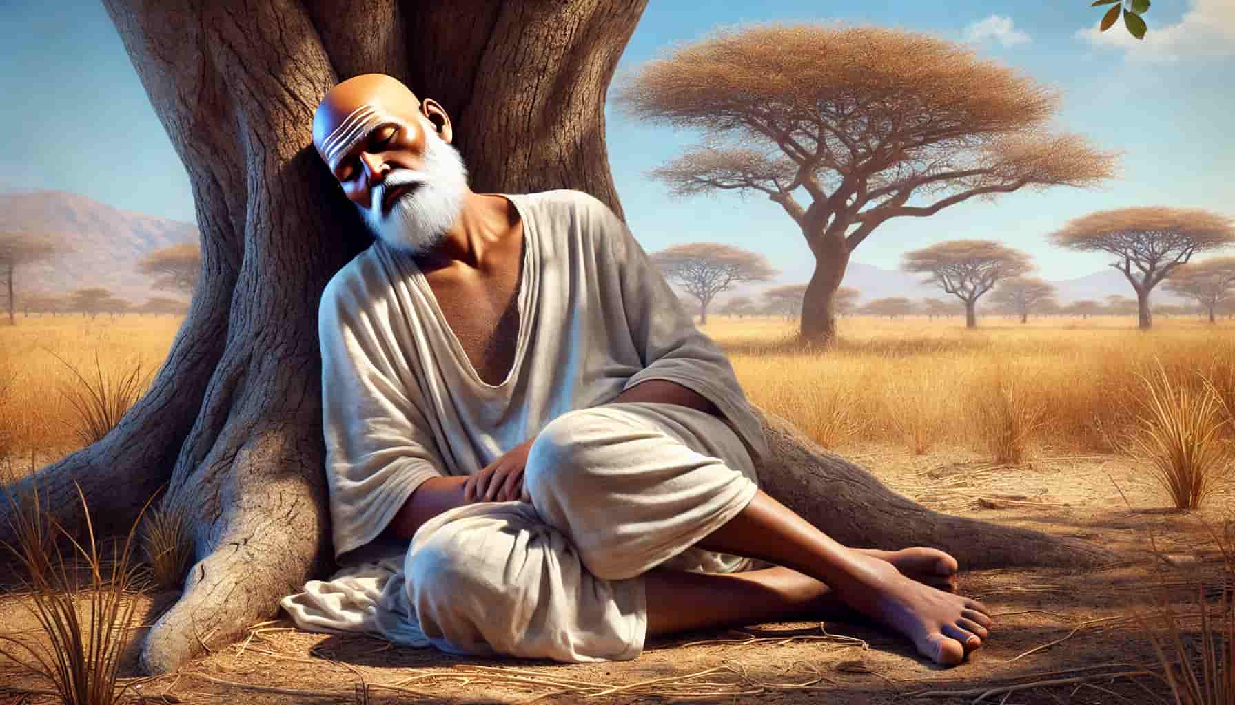 One day, a massive famine struck. His wife and children starved. He wandered again in search of food and was attacked by wild animals. In agony, he cried out.
