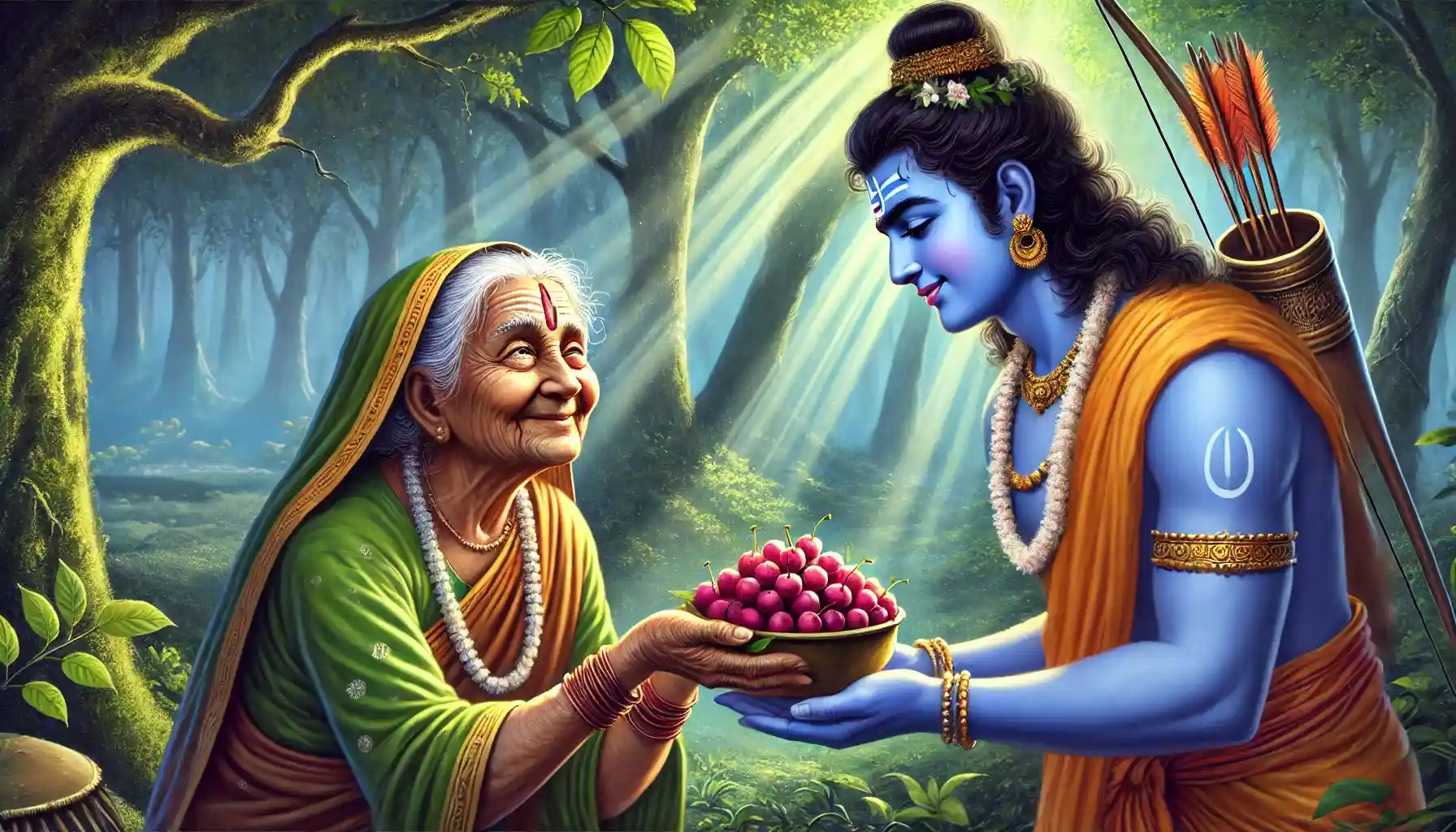 Shabari, a tribal woman, waited for years with unwavering devotion to meet Lord Rama. Her sincere love and faith exemplify the power of pure devotion in attaining the Divine.