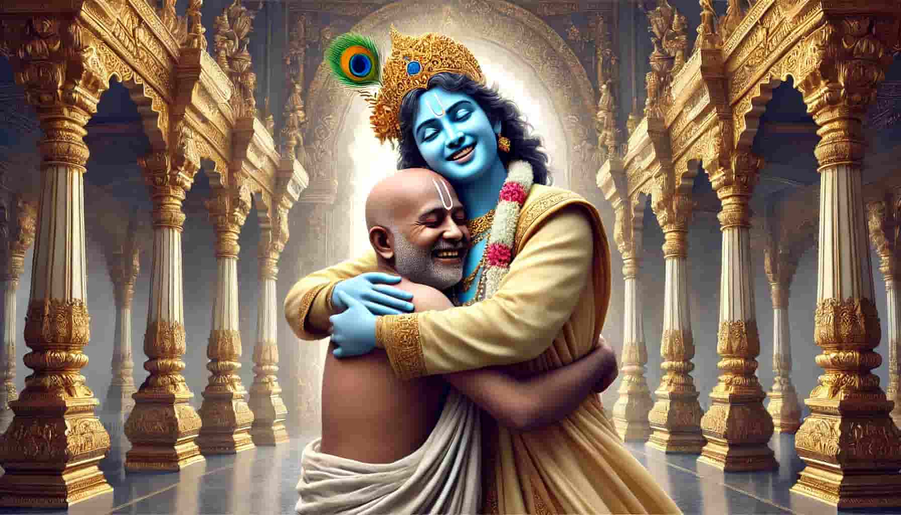 Krishna asks his followers to love everyone equally. The sun's light falls on everyone the same way. "I am the same to all beings, and my love is ever the same," Krishna says, showing us how to love without favorites.
