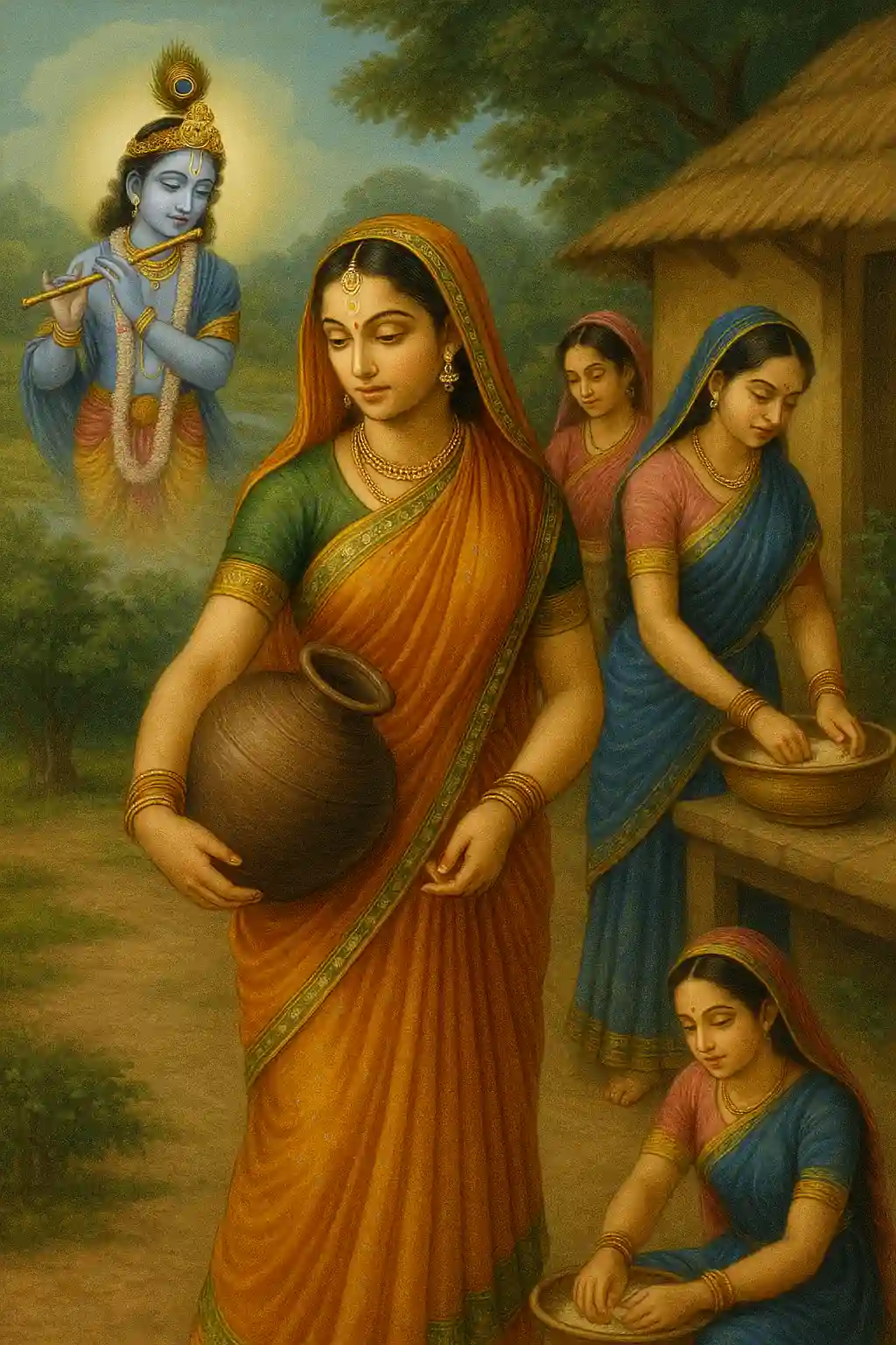 "Gopies exemplified the spirit of Karm Yog in performance of their daily chores while keeping their mind attached to Shree Krishna."