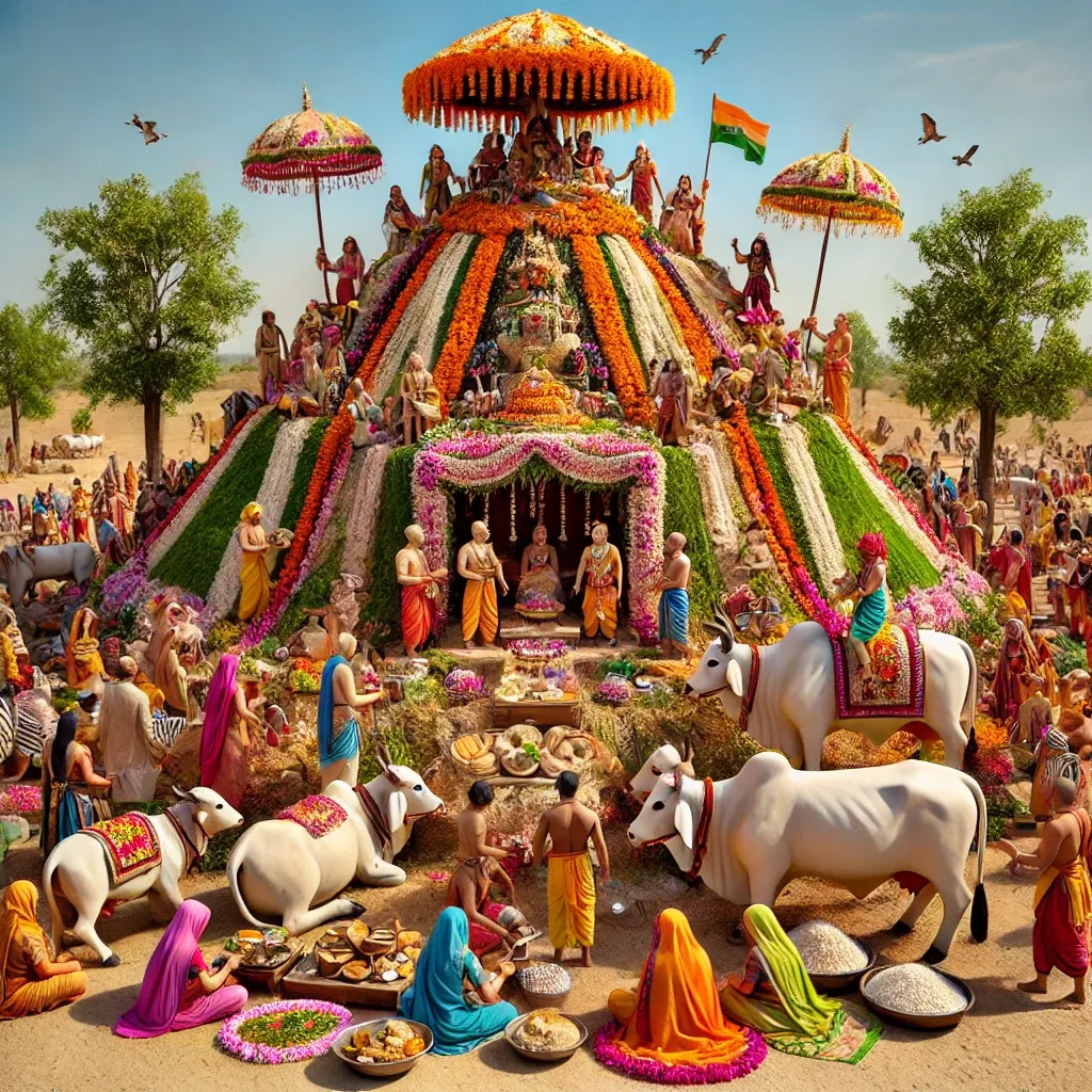 He organized the entire village into groups. Some prepared sweets, others brought fruits, grains, and delicacies. Together, they made a grand offering to Govardhan Hill.