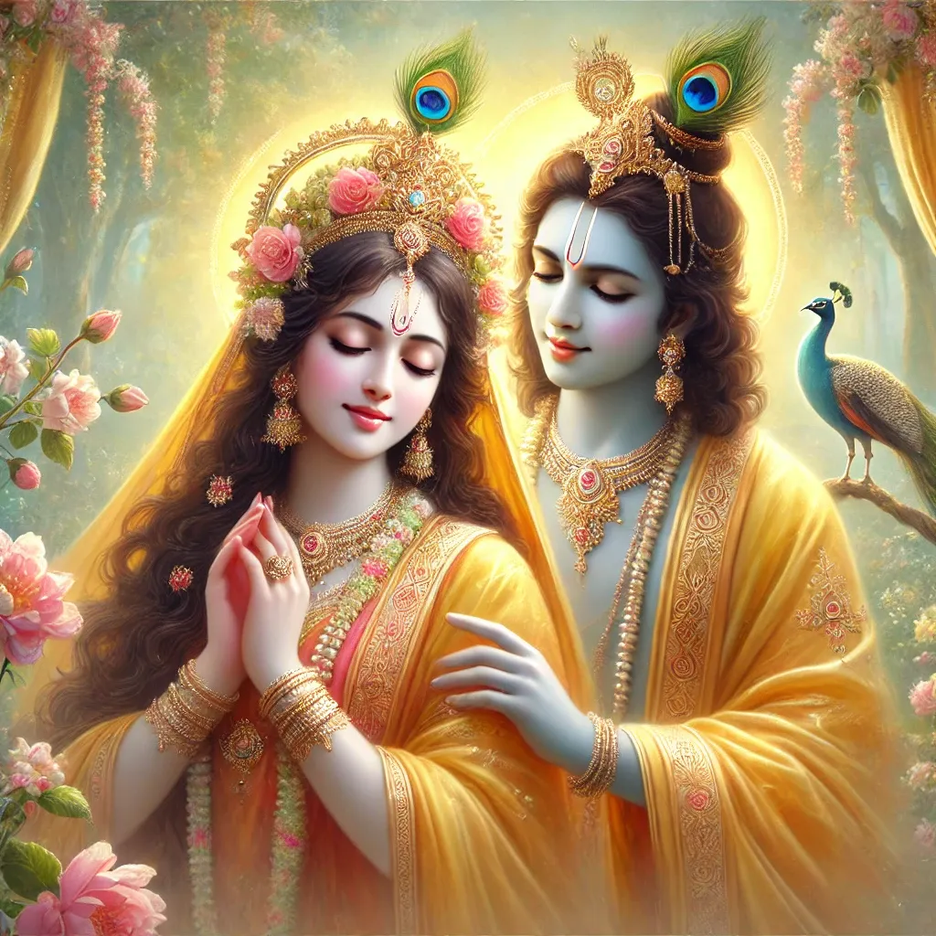 During the lifting of the hill, Radha appeared, and Krishna’s heart stirred with divine emotions. Swami Mukundananda describes how Krishna began experiencing Satvik Bhav — spiritual ecstasy that arises in the presence of pure love.