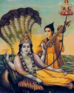 Narad ji immediately went to the forest and to the tree where the newborn parrot had emerged and asked him the question. As soon as Narad ji asked the question, the baby parrot fell off the tree and died. Narad ji was shocked. He returned to Vaikunth to ask Lord Vishnu what just happened. The Lord did not respond but told him to return to earth and visit a certain village at a Brahmin’s house where a newborn calf would answer the question.
