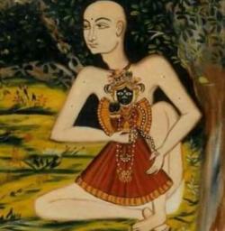 Swami Haridas had another disciple named Hrishikesh who was sent to Rajasthan to preach. There he met a man named Vigyani. Hrishikesh told him that his Guru has conversations with Lord Krishna. Vigyani deeply desired to witness this leela. He asked Hrishikesh what he could take to his Guru when he went for his darshan. Hrishikesh said that Swami Haridas wanted nothing so he could either take some bhog item or some perfume to offer to God.