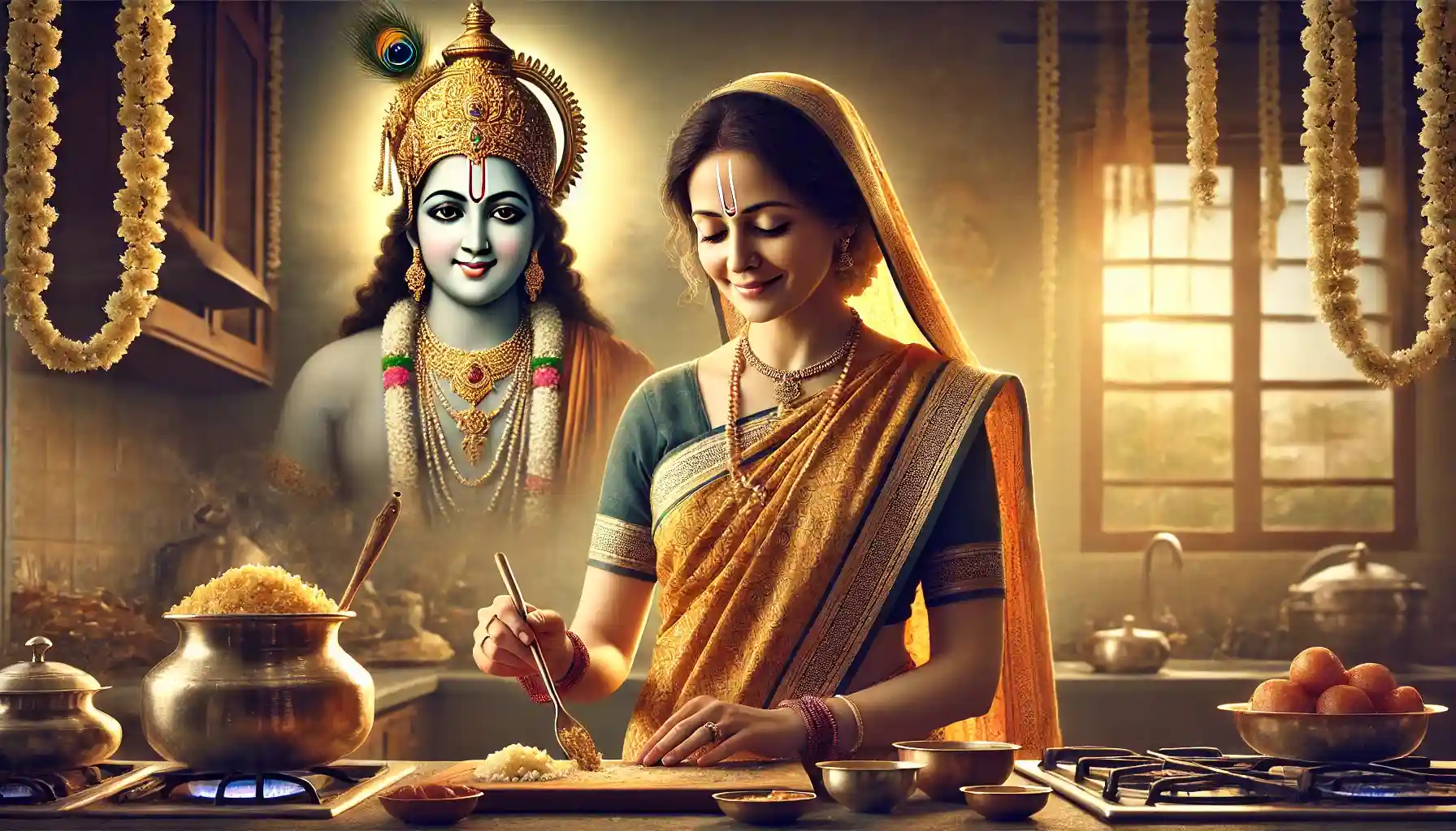 - Food as sacred offering: Devotees offer food to Shri Krishna first and eat it as his prasadam. This simple act turns eating from mere pleasure into devotion