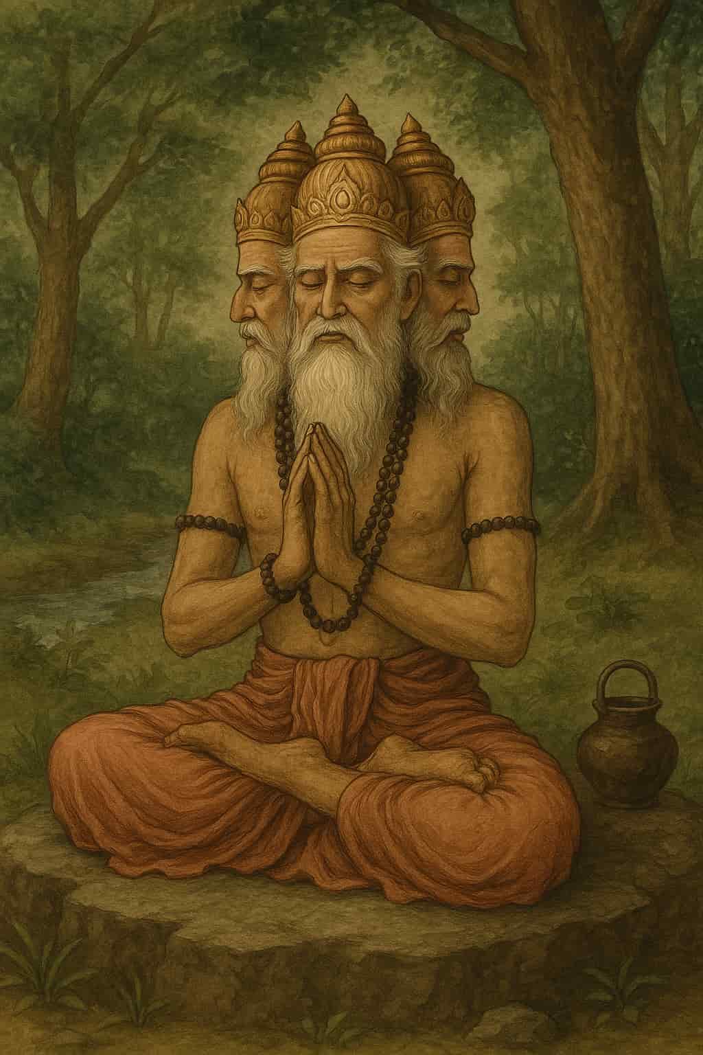 To illustrate the power of divine knowledge, Swami Mukundananda recounts the story of Brahma, the creator in Hindu cosmology. Before beginning creation, Brahma performed deep austerities (tapasya) to understand the purpose of life. His devotion was rewarded when Lord Krishna revealed four sacred verses—chatushloki bhagavatam—which became the seed for the 18,000 verses of the Srimad Bhagavatam.