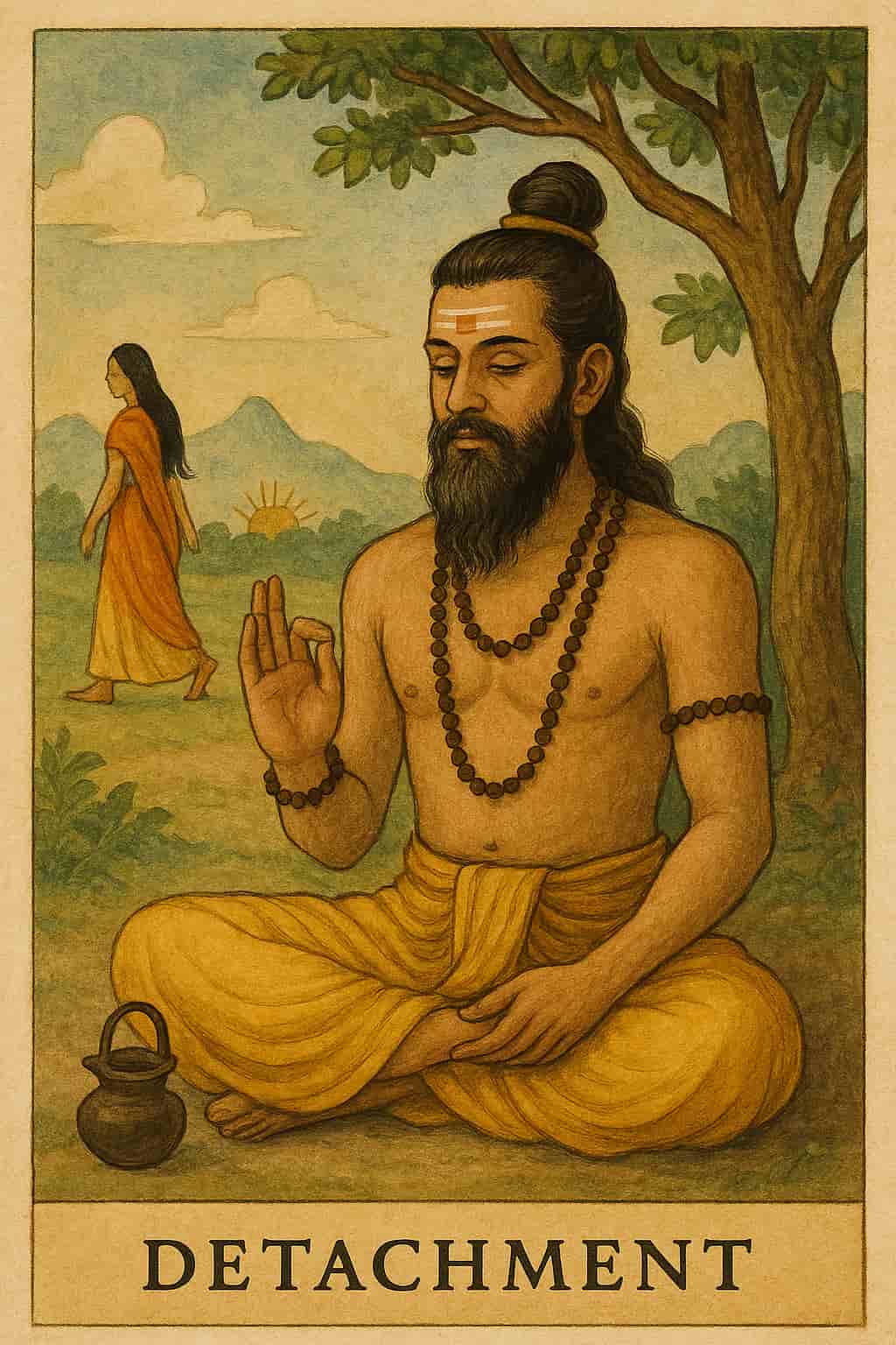 Sanskrit, Vairagya means renunciation—not just of physical comforts, but of internal attachments. The root Raga refers to both attraction and aversion. Whether you’re obsessing over a loved one or harboring a grudge, both are forms of bondage.