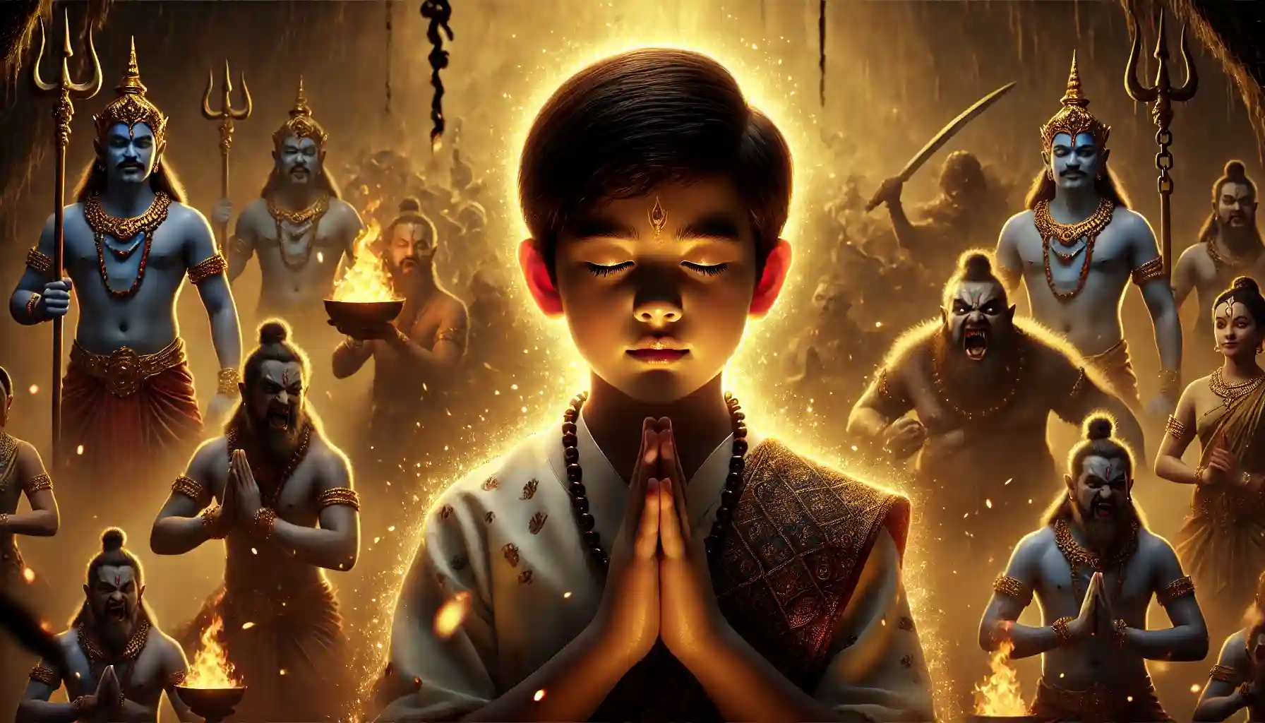 Hiranyakashipu tried everything to change his son's beliefs. He moved from gentle convincing to brutal torture. Prahlada faced countless horrors - being thrown from mountains, dropped into snake pits, poisoned, crushed by elephants, and pushed into flames. Each trial only made Prahlada's faith stronger as Vishnu's protection kept him safe.