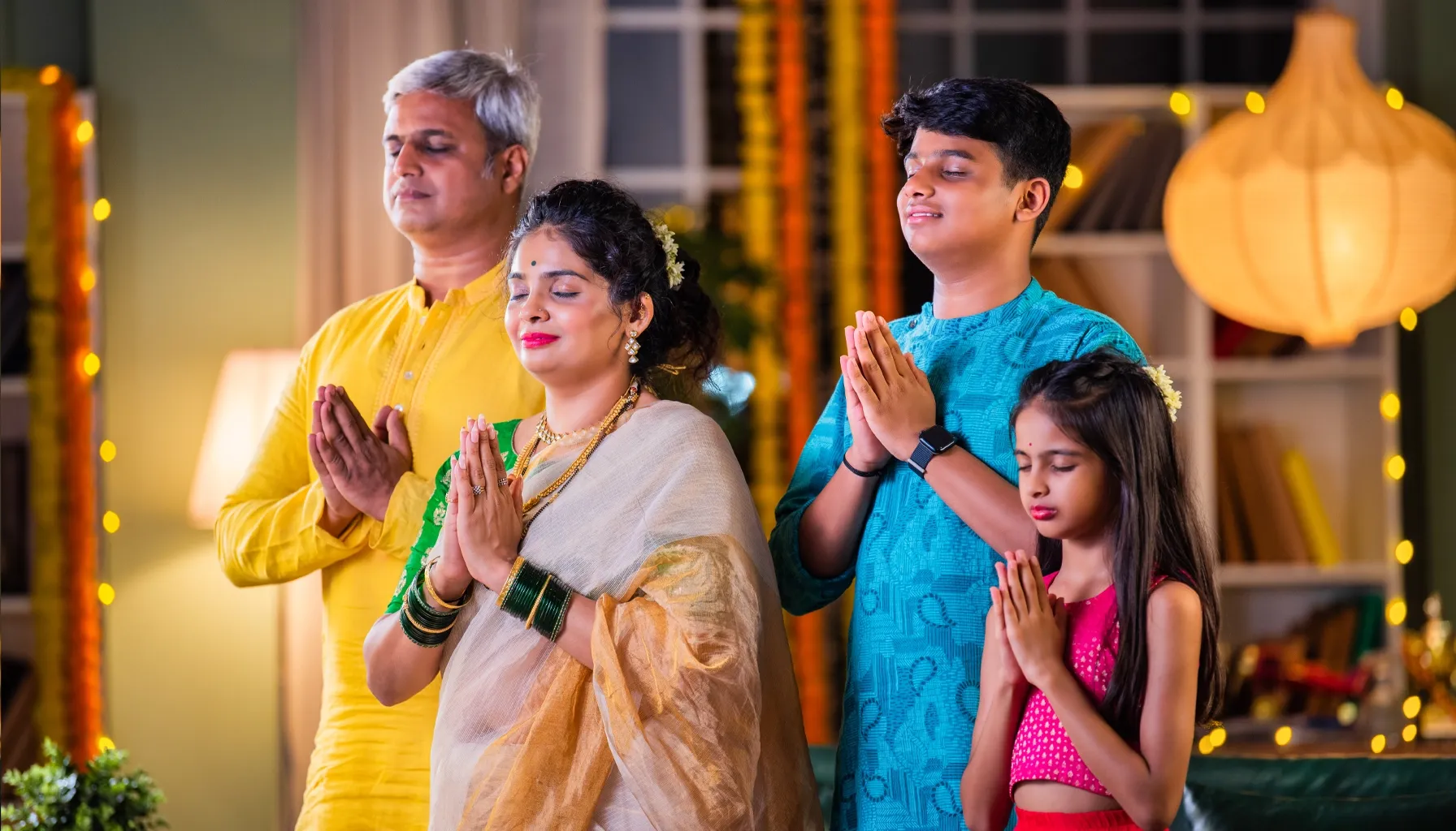 The puja ends with asking forgiveness for any mistakes during worship. Share the blessed prasadam with your family members.