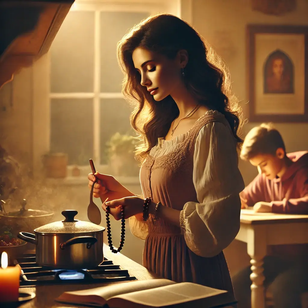 "In life’s battlefield, a mother serves with love, surrendering each act to God. Like the Gita teaches — fulfill your duty, not with grief, but with grace and devotion."