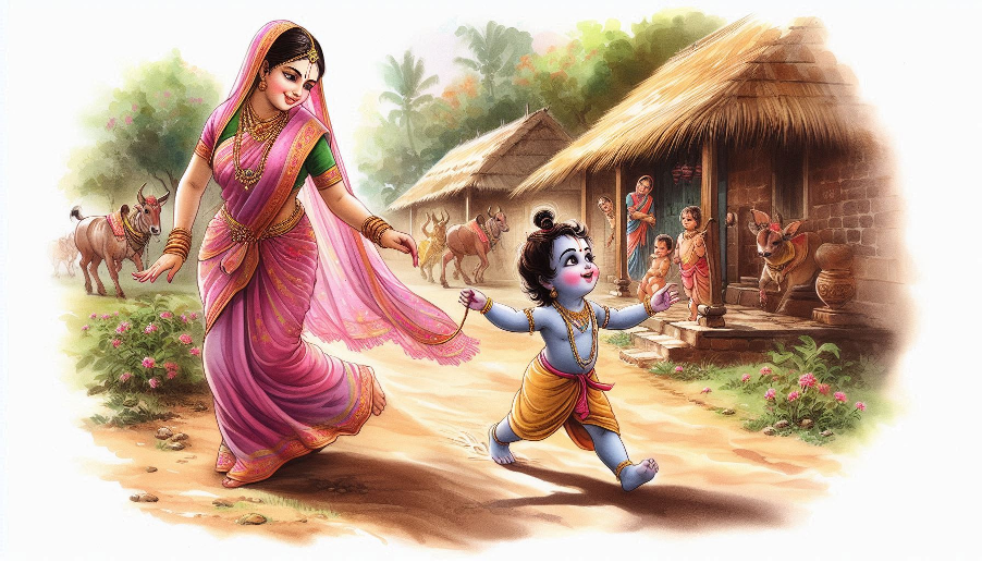 Yashoda laughed. The Gopis gasped. Little Shree Krishna grinned.