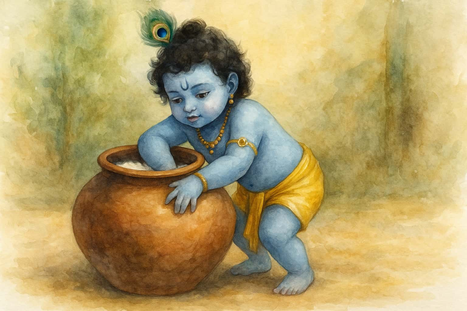 In the path of Bhakti Yog, few stories shine brighter than the playful and loving pastimes of Shree Krishna as a child. These divine episodes are more than mere stories, they are deep spiritual teachings wrapped in joy, laughter, and love.