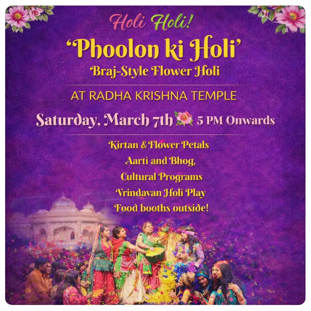 🌸✨ Celebrate Phoolon Ki Holi 2026 at Radha Krishna Temple Dallas! ✨🌸