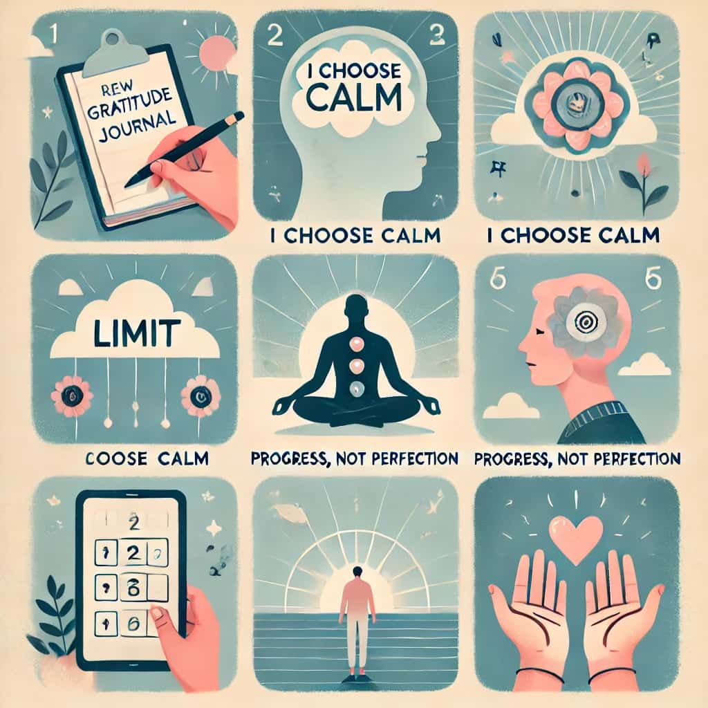 • Thought awareness check-ins (asking if your focus is helpful or can be reframed)