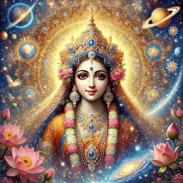 In addition to being the consort of Krishna, Radha represents Mulaprakriti — the primal, eternal energy that underpins the entire universe. She is the embodiment of all divine Shaktis, the cosmic forces that create, sustain, and destroy the universe.