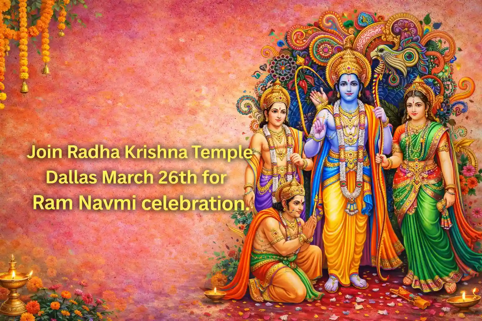 Join the Radha Krishna Temple of Dallas on March 26, 2026, and experience the devotion, joy, and spiritual beauty of Ram Navami. It is a celebration that reminds us of the enduring power of faith, righteousness, and unity.
