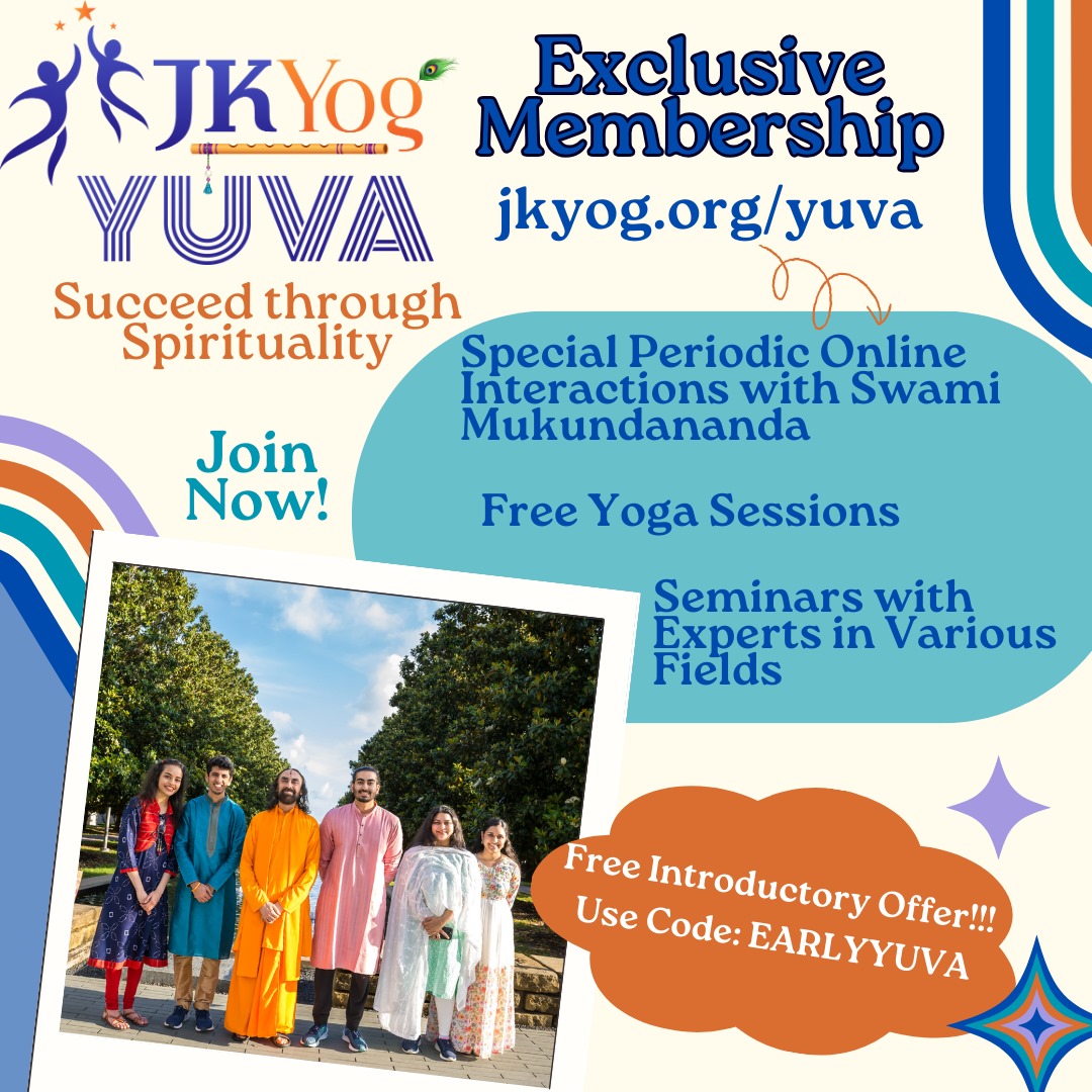 JKYog believes in transforming the world through wisdom. What better way to transform the world than to empower the youth and young adults interested in creating a harmonious and compassionate world? With this noble goal, JKYog will launch an innovative initiative tailored exclusively for young adults (ages 18-30 years) called JKYog YUVA. This highly awaited program will be officially launched in the divine presence of Swami Mukundananda.