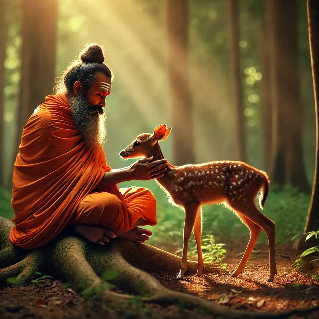 King Bharat was a pious ruler who renounced his kingdom to seek God in the forest. But during his sādhanā, he developed a deep attachment to an orphaned baby deer. This emotional bond consumed his thoughts, and at the time of death, he was thinking only of the deer.