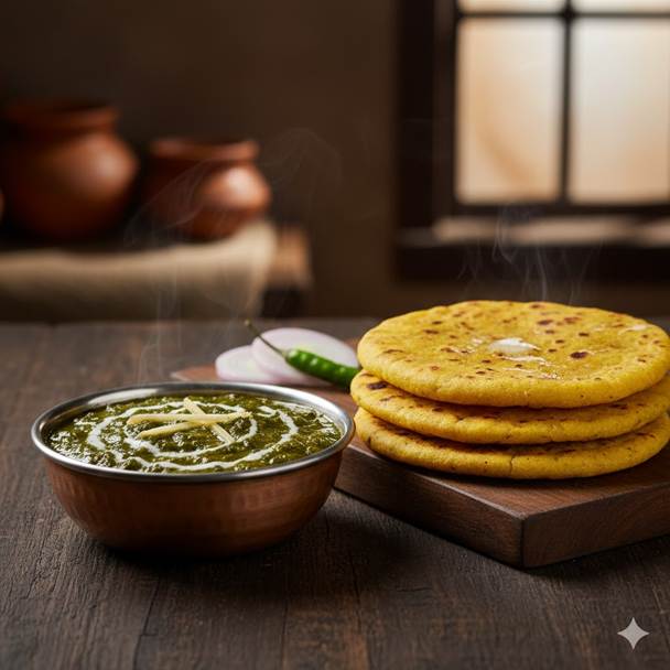 Significance: Sarson Ka Saag and Makki ki Roti dish: each bite reminds us that simplicity, steadfastness, and mindful preparation are acts of devotion.