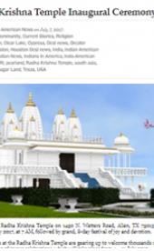 ALLEN:The Radha Krishna Temple on 1450 N. Watters Road, Allen, TX 75013 opened its doors on 4 July 2017, at 7 AM, followed by grand, 8-day festival of...
