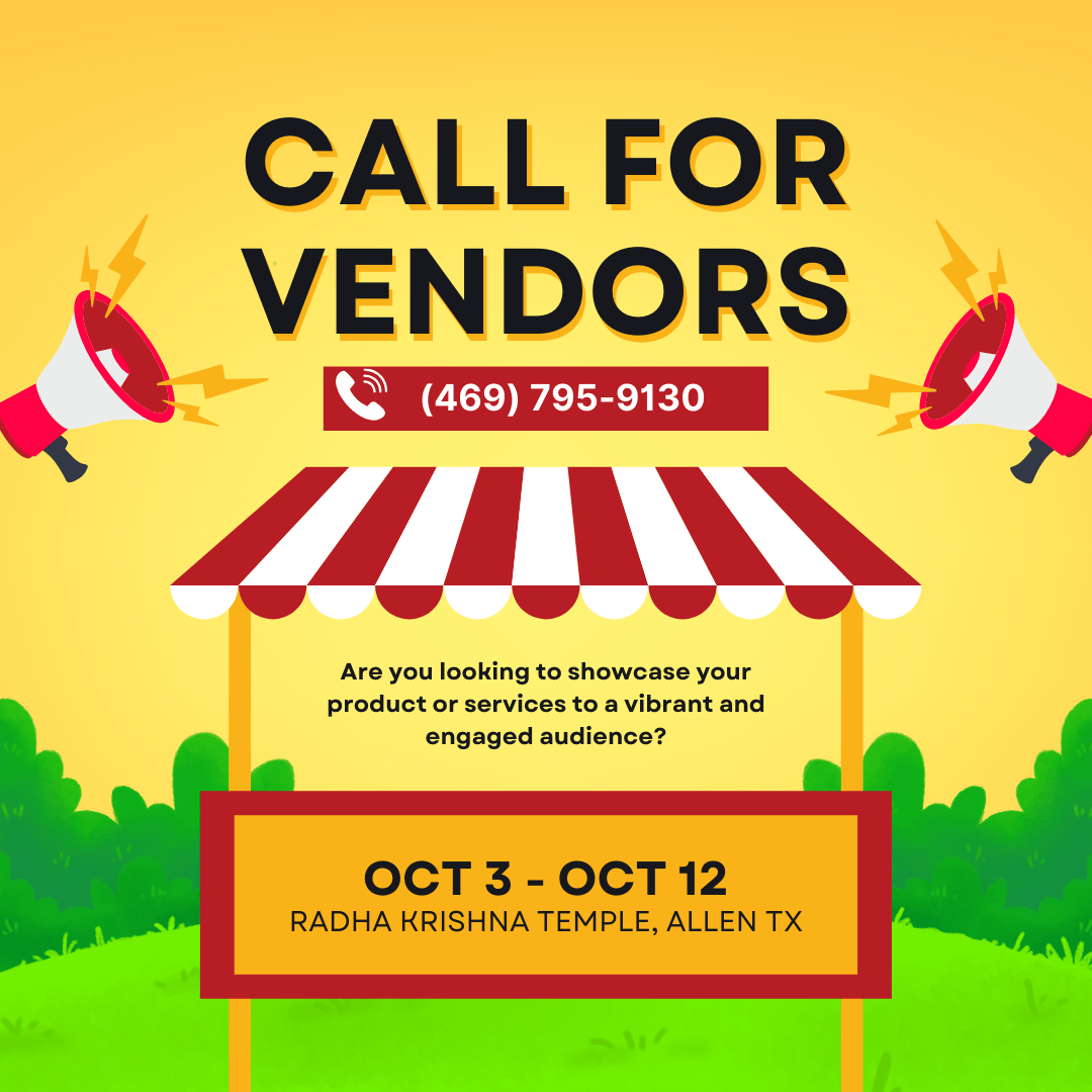 Navratri literally means nine (nav) nights (ratri). It is celebrated in honor of the Divine Mother of the Universe in Her various forms. Out of Her causeless compassion, the Divine Mother takes on many forms that represent her varied moods to grace souls in a multitude of ways. Navratri is a time when all of Her divine forms are celebrated with devotion and exuberance! As an offering to Her lotus feet, this Navratri, the Radha Krishna Temple of Dallas (Allen) reverentially presents a rainbow of activities for the entire Dallas community!