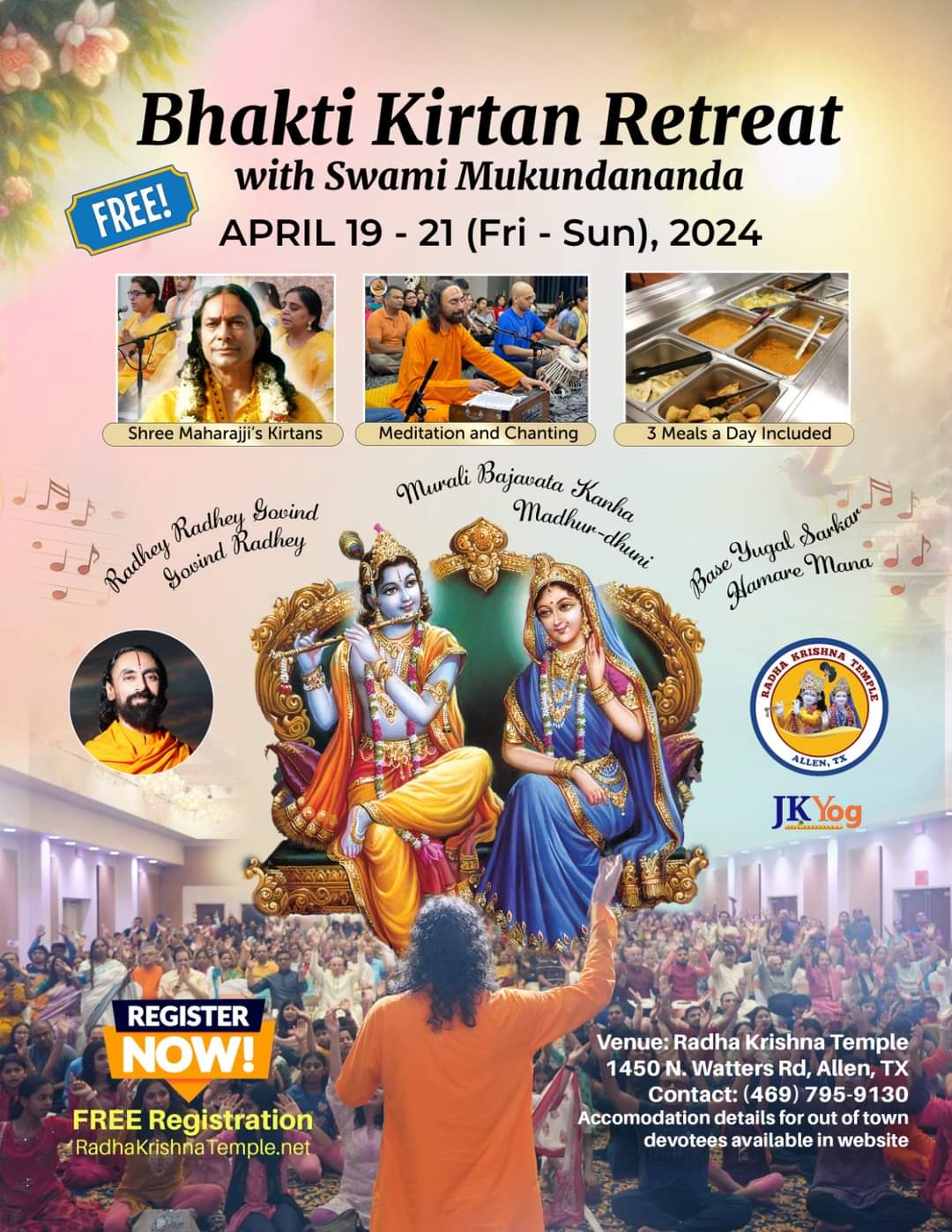 Upcoming EventsThe upcoming month of April will be the most auspicious at the Radha Krishna Temple of Dallas (Allen) because we will celebrate numerous festivals in the divine presence of Swami Mukundananda ji.