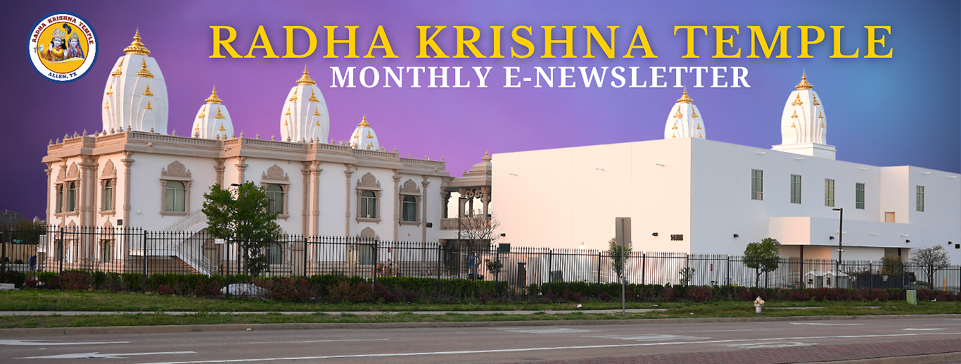 In this issue, we describe an element of the scriptural knowledge in the features on Bhakti Ras and Bal-Mukund Wisdom. We also provide health tips and keep you aware of the upcoming events at the Radha Krishna Temple of Dallas (Allen) this month.