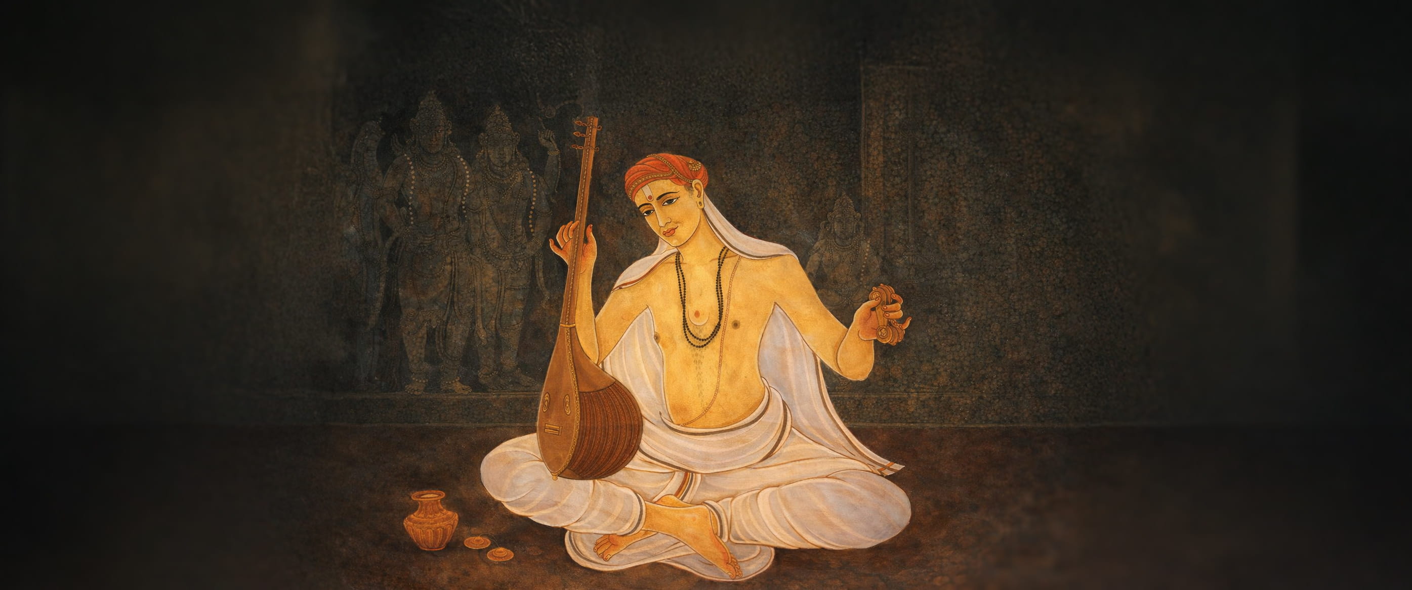 Celebrate the saint-composer Tyāgarāja through devotional music offerings (Nāda Seva). Experience Carnatic kirtans glorifying Lord Rama and Lord Venkateshwara.