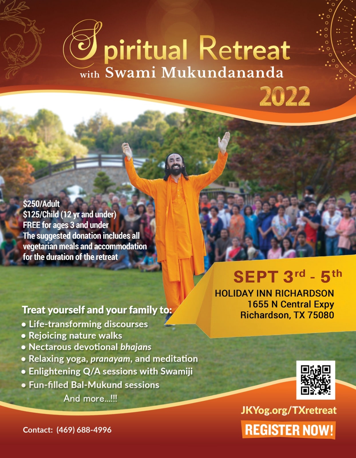 Disconnect from the world and immerse yourself in three days of bliss that includes physical yogāsans, pranāyām sessions, meditations, soulful kirtans/chanting, enlightening discourses by Swami Mukundananda, festival celebrations, outdoor parikrama, and much more!